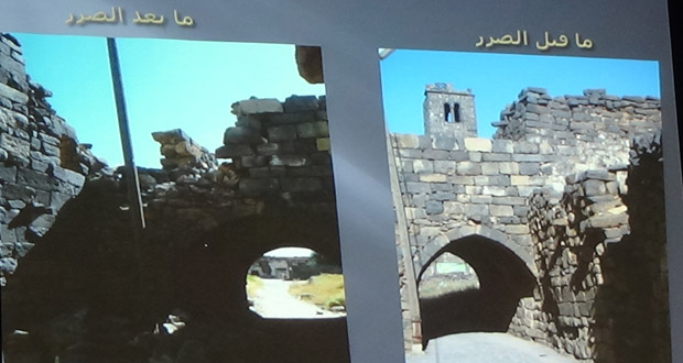 ولفت رئيس دائرة آثار درعا محمد خير نصر الله إلى حجم الأضرار التي لحقت بالإرث الحضاري للمحافظة جراء اعتداءات التنظيمات الإرهابية المسلحة داعيا المجتمع المحلي إلى الإسهام بحماية الآثار والممتلكات الثقافية للمحافظة.
