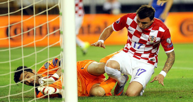 وسجل مانزوكيتش الذي أهدر ركلة جزاء في بداية المباراة هدفه بعد ثوان من الغاء هدف لستيفان الشعراوي لاعب ايطاليا بداعي التسلل.