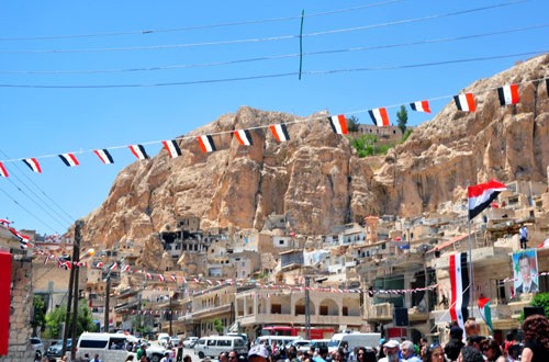 2015-06-13 فيديو : أنس الحسين بتوجيه من الرئيس الأسد.. إعادة تمثال السيدة العذراء إلى مكانه الأصلي في مدينة معلولا بريف دمشق 2015-06-13mohamad