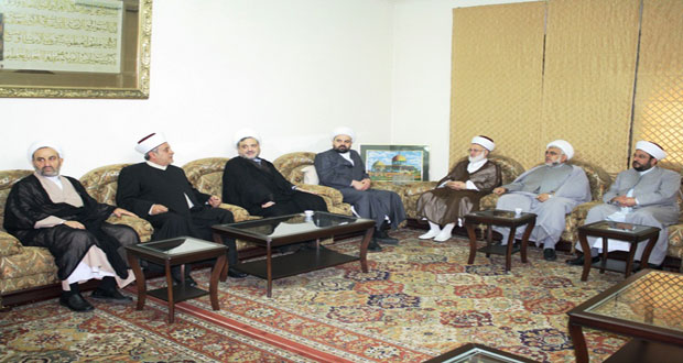 أكد المفتي الجعفري الممتاز في لبنان الشيخ أحمد قبلان ووفد تجمع العلماء المسلمين برئاسة الشيخ حسان عبد الله على ضرورة مواجهة الإرهاب والعمل على حماية سورية من هذا العدو الإرهابي التكفيري والوصول إلى حل سياسي ينهي الوضع الراهن.