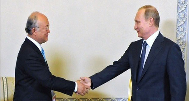 أكد الرئيس الروسي فلاديمير بوتين خلال لقائه رئيس الوكالة الدولية للطاقة الذرية يوكيا أمانو التزام بلاده بجميع المتطلبات المتعلقة بعدم انتشار الأسلحة النووية بشكل صارم.