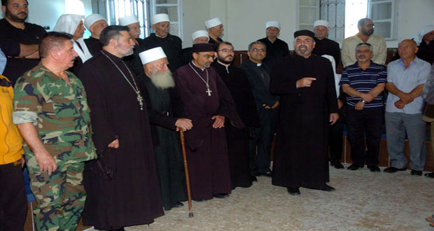 وأشار الأب بطرس البشارة من مطرانية بصرى وحوران وجبل العرب للروم الأرثوذكس في تصريح لمراسل سانا إلى أن هذه الزيارة هي تحية اعتزاز وافتخار بالانتصار الذي حققه أبطال جيشنا الباسل على الإرهابيين التكفيريين الظلاميين بفضل صمودهم ومؤازرة أبناء المحافظة لحماة الأرض والعرض لافتا إلى أن هذه المعركة البطولية جسدت وحدة الصف والوحدة الوطنية بأبهى صورها من خلال وقوف أبناء المحافظة بمختلف أطيافهم جنبا إلى جنب مع أبطال الجيش والقوات المسلحة في معركة الدفاع عن الوطن.