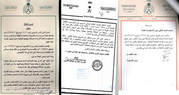 وأظهرت إحدى الوثائق كيف قام آل سعود بالطلب من سفارتهم في القاهرة التحري عن تلفزيون أون تي في بعد بثه مقابلة مع المعارض السعودي سعد الفقيه ومعرفة كيفية التعامل مع القناة من أجل شرائها وهو ما حصل عندما قام مالك القناة بتأنيب المشرف والطلب منه عدم استضافة المعارض الفقيه مرة أخرى واعداً سفير آل سعود بعدم تكرار هذا الأمر وعارضاً عليه أن يكون ضيفاً على القناة.