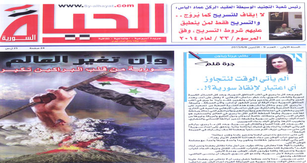 يتابع القارئ في العدد الجديد من جريدة الحياة السورية باقة من المواضيع والقضايا السياسية والاجتماعية والثقافية والأخبار المنوعة تناولها كتاب الجريدة.