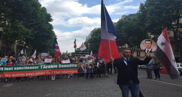 مظاهرة في باريس ضد سياسات هولاند وحكومته ونظام آل سعود الداعمة للإرهاب