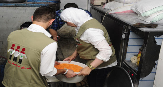 وأوضحت علا بسمار متطوعة من فريق /سورية بتجمعنا/ لمراسلة سانا أن الجمعية تواصل نشاطاتها في رمضان للعام الثالث على التوالي بإعداد وجبات الفطور والسحور لأسر الشهداء والمهجرين وابطال الجيش العربي السوري لافتة الى الاقبال الشديد من قبل الشباب المتطوع في الجمعية على طهي وتحضير وجبات الإفطار.
