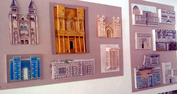 في السياق نفسه اشارت الطالبة المشاركة آلاء محمد داؤد إلى ان المعرض يفرد جناحا خاصا لمادة /الورش والنماذج/ التي يتم التركيز فيها على مبدأ صناعة ودراسة مجسمات للاشكال والتصميمات المرسومة على الورق ومنها نوافذ وبوابات وواجهات لمحلات وابنية تم رسمها بداية على ورق الكرتون لإخراجها بألوانها الحقيقية وابعادها المنطقية ثم تنفيذها باستخدام الورق المقوى.