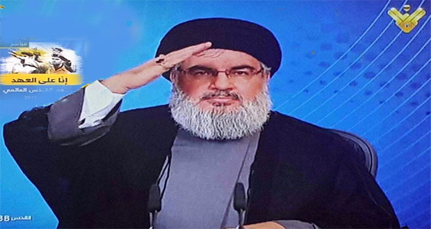 وتوجه الأمين العام لحزب الله “إلى المسلمين والمسيحيين والعرب والفلسطينيين وحركات المقاومة والمساندين والمؤيدين للقضية الفلسطينية” بالقول “لا يستطيع أي أحد أن يكون مع فلسطين إلا إذا كان مع الجمهورية الإسلامية الإيرانية وإذا كان عدوا لها فهو عدو لفلسطين والقدس” معتبرا أنها الأمل الوحيد المتبقي لاستعادة فلسطين والقدس لأنها تساند وتدعم شعوب وحركات المقاومة في المنطقة وفي مقدمها الشعب الفلسطيني لافتا في الوقت ذاته إلى أنه إذا اقترب أحد ليمد يد العون إلى فلسطين والقدس يعملون على تحويله إلى عدو.