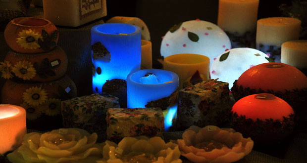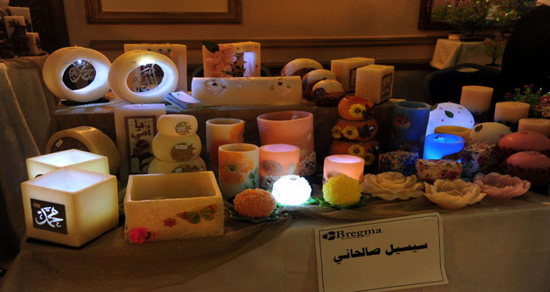 بدورها تقول سيسيل صالحاني أحدى المشاركات أنها تشارك بمنتجات من الشموع تطورها باستمرار وتروج لها من خلال البازارات وهي راضية عما حققته منذ عشرة أعوام إلى الآن في هذا المجال.