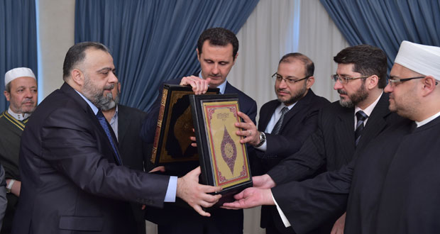 بمناسبة ليلة القدر التي أنزل فيها القرآن هدى للناس وبينات من الهدى والفرقان استقبل السيد الرئيس بشار الأسد أمس الإثنين الدكتور محمد عبد الستار السيد وزير الأوقاف وأعضاء اللجنة الدائمة لشؤون القرآن الكريم في الوزارة.