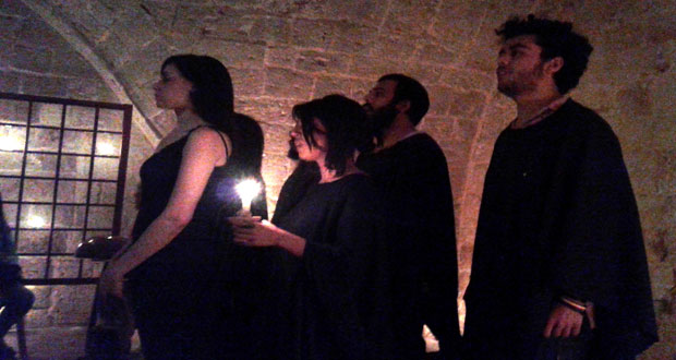 الاستغناء عن الإضاءة والاكتفاء بضوء الشموع حمل رسالة إلى الجمهور ليشعر برائحة المكان الذي اختير بعناية لتقديم العرض على مدى يومين في اللاذقية بالشكل الذي يخدم النص وشروطه وبين عمران أن اختيار نمط الحكواتي لتقديم المسرحية وإسناد الدور للمرأة أضفى على العمل ميزة خاصة إعادتنا إلى عصر الجدات وحكاياتهن ولا سيما وأنه دمج المشهد بكامله مع عناصر فنية من أغنية وعزف أصبحت جزءا من السردية ككل.