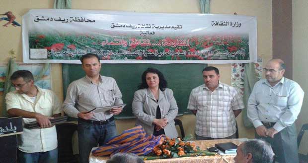 وتلا الورشة محاضرة ألقاها بركات بركات عن انتصار محور المقاومة على الحرب الكونية التي تتعرض لها سورية لتختتم الفعالية بتكريم ليلى صعب مديرة ثقافة ريف دمشق لمجموعة من عمال الكهرباء الذين يواجهون بعملهم أقسى وأصعب الظروف.