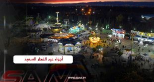ودع السوريون شهر رمضان المبارك واستقبلوا عيد الفطر السعيد بأجواء تسودها التآخي والمحبة والتضامن وتطبعها فرحة اللقاء بين أفراد العائلة والأصدقاء متحدين الظروف الصعبة التي تمر بها البلاد لتؤكد أن سورية عازمة على النصر والقضاء على الإرهاب.