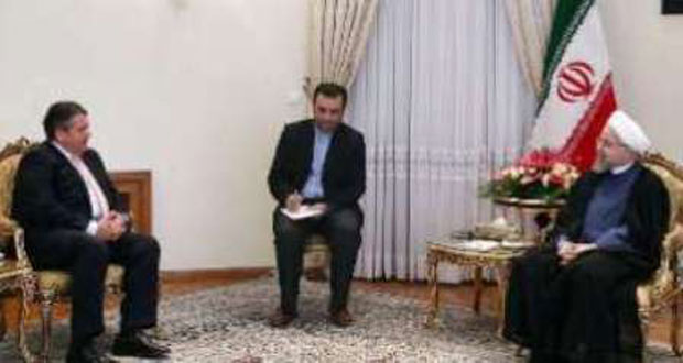 وقال روحاني خلال لقائه وزير الاقتصاد والطاقة مساعد المستشارة الألمانية زيغمار غابريل أن “العلاقات الاقتصادية والتجارية أحد السبل الكفيلة بتعزيز وتنفيذ الاتفاق النووي بين إيران ومجموعة “خمسة زائد واحد” “.