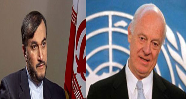 ودعا دي ميستورا الى التعاون الجماعي بين الدول ذات التأثير بالازمة في سورية ومشاركة الجمهورية الاسلامية الايرانية في هذا التعاون.