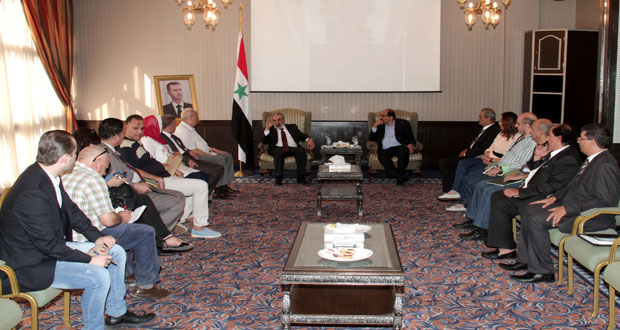 وعبر أعضاء الوفد عن تضامنهم مع سورية قيادة وشعبا وجيشا في حربها ضد الإرهاب التكفيري والتي تقودها نيابة عن المنطقة وأنهم سيعملون على أن يكون لبيان دمشق الصادر عن المؤتمر مكان له في الأردن.