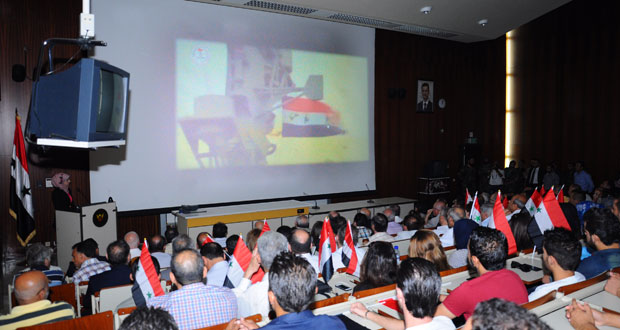 بالفيديو.. احتفالية بتأسيس الجيش على مدرح مشفى الأسد الجامعي