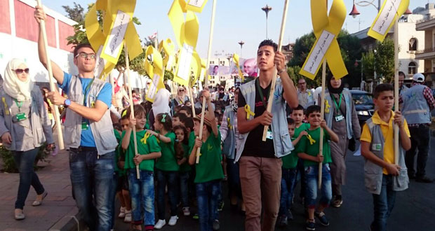 دعما لأطفال مرضى السرطان نفذ اطفال روضة براعم الخير بحمص اليوم نشاطا تضمن مسيرا انطلق من شارع البرازيل في حي الانشاءات مرورا بشارع طرابلس وإلى الشارع الرئيسي في حي الحمرا وذلك بهدف دعمهم نفسيا ومعنويا.