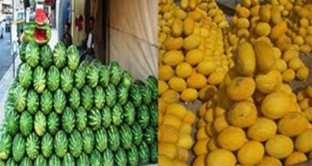 قدرت مديرية زراعة حماة إنتاج المحافظة للموسم الحالي من محصول البطيخ الأحمر بـ 34056 طنا والأصفر بـ 2848 طنا.
