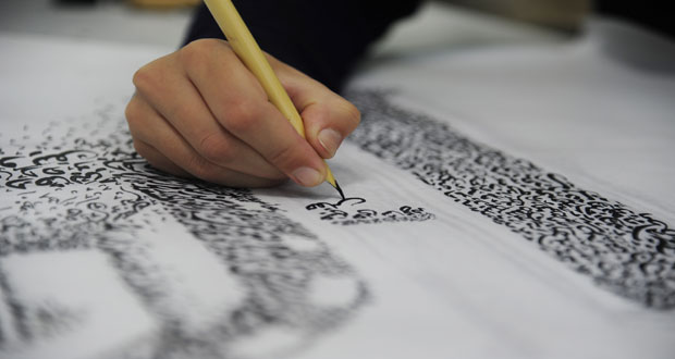 وأشار المشارك علي خضر إلى أن المزج بين الخط العربي وباقي الفنون أمر مهم وجديد فمشاركة النحت بلوحة حروفية وبناء كتلة فوق الخط يعطي لوحة جديدة ومميزة لأن الخط العربي يتميز في كل مجالات الفن من نحت ورسم وتصوير.