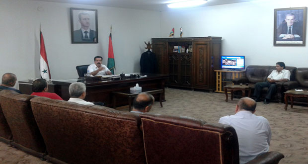 وأشار إلى أن الإعلام الوطني في محافظة القنيطرة يتحمل مسؤوليات إضافية تتمثل بتسليط الضوء على قضية الجولان العربي السوري المحتل والممارسات العدوانية والتعسفية لسلطات الاحتلال الإسرائيلي بحق أهلنا الصامدين في قراهم المحتلة مثمنا وقفات العز ومعركة الكرامة التي يخوضها أبناء الجولان المحتل في وجه الغطرسة الإسرائيلية واخرها “منع سيارات الإسعاف الصهيونية من نقل مسلحي الإرهابيين للعلاج في مشافي الاحتلال”.
