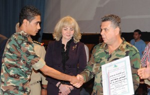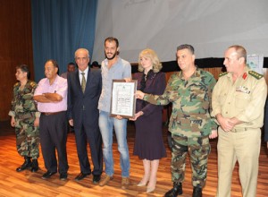 وتخلل حفل التكريم عرض فيلم وثائقي بعنوان “حماة الوطن” سلط الضوء على التدريبات والمهارات القتالية والتكتيكات العسكرية التي يتلقاها مقاتلو الجيش العربي السوري لاستخدامها في أرض المعركة بشكل صحيح والفيلم من إنتاج الإدارة السياسية في الجيش العربي السوري واخراج وضاح العهد وهادي عبد الحميد.