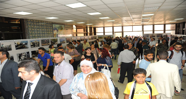 في اليوم الأخير لفعاليات معرض الصور الضوئية “تحية إلى حماة الديار” في عيدهم الذي تقيمه الوكالة العربية السورية للأنباء سانا بمكتبة الأسد الوطنية عبرت شخصيات أدبية وثقافية متعددة زارت المعرض عن رؤى مختلفة ومتنوعة تعكس مضامين صور المعرض وما خلفته من خواطر وقراءات تفاعلية مع مادة العمل الفني للمعرض منفعلة بالتكوين المعرفي والفني للصور التي نقلت الحدث بأبعاده الحقيقية.