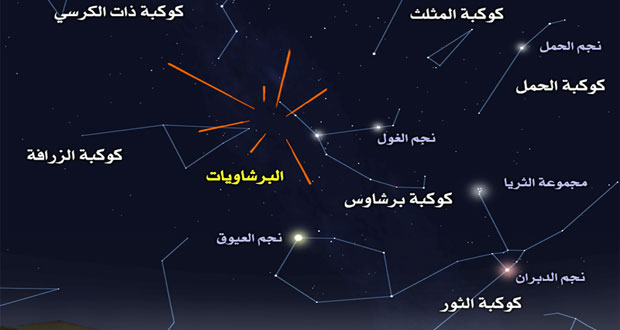 واوضح سنوبر ان أسماء الهطل الشهابي تأتي دائماً من كوكبة النجوم التي تشاهد فيها الشهب ففي هذا الهطل تشاهد الشهب وكأنها قادمة من كوكبة برشاوس حامل رأس الغول ولذلك سميت بالبرشاويات مبينا أن الشهب عبارة عن ذرات من الرمل والحصي الصغير التي يخلفها وراءه المذنب وعند اصطدامها بالغلاف الجوي للأرض وهي تسير بسرعة كبيرة تحترق وتتبخر وتعطي الأشكال الجميلة الشبيهة بالألعاب النارية.