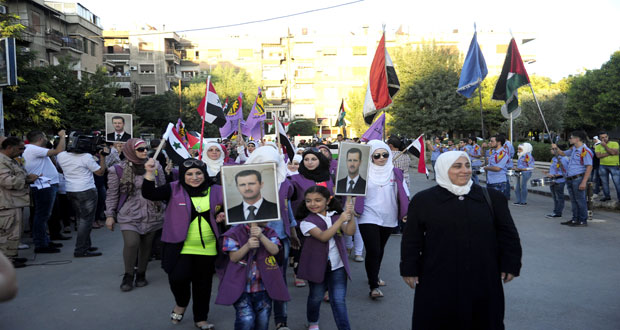بالفيديو.. مسيرة حاشدة في باب توما دعما للجيش بمواجهة الإرهاب
