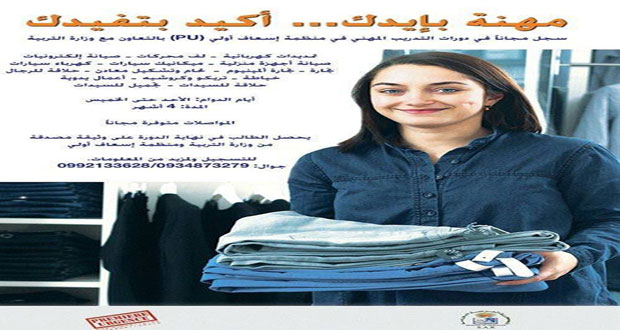 أطلقت منظمة الإسعاف الأولي مؤخرا وبالتعاون مع وزارة التربية دورات التدريب المهني بهدف تنمية مهارات الشباب وتطويرها حيث تشمل الدورات المقامة و التي تستمر لمدة أربعة أشهر برامج تدريبية خاصة بعدد كبير من القطاعات المهنية تمكينا لجيل الشباب ورفدا لمهاراتهم و خبراتهم في مواجهة سوق العمل الواسعة.