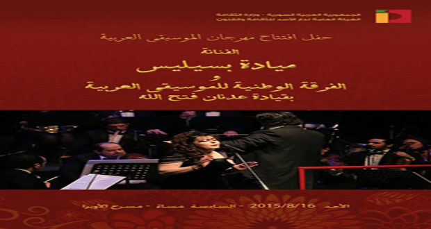 تحيي الفنانة الكبيرة ميادة بسيليس والفرقة الوطنية للموسيقا العربية بقيادة المايسترو عدنان فتح الله حفل افتتاح مهرجان الموسيقا العربية الذي تقيمه الهيئة العامة لدار الأسد للثقافة والفنون في الساعة السادسة من مساء غد الأحد في مسرح الأوبرا.