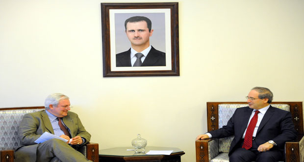 بحث الدكتور فيصل المقداد نائب وزير الخارجية والمغتربين مع ستيفن اوبراين وكيل الأمين العام للأمم المتحدة للشؤون الانسانية والوفد المرافق اليوم دور الامم المتحدة في الاستجابة الانسانية للأوضاع في سورية.