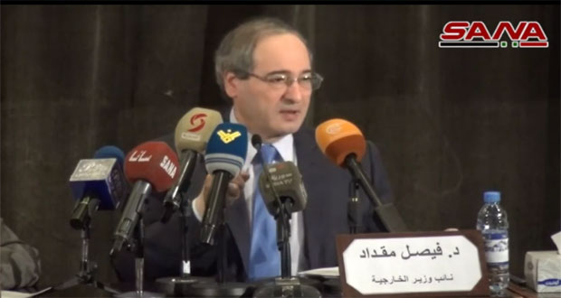 دمشق-سانا التقى نائب رئيس الجمهورية الدكتور فيصل المقداد مع مدير عام دائرة العلاقات العربية
