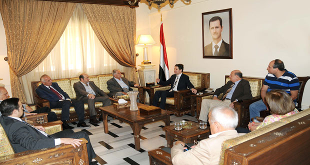 بحث وزير السياحة المهندس بشر يازجي مع رئيس وأعضاء مجلس إدارة غرفة تجارة دمشق أفكارا ومقترحات لتحسين ودفع السياحة الداخلية والدينية وسياحة الأعمال والاغتراب إلى الأمام للمساهمة في تدوير عجلة الاقتصاد الوطني .