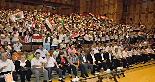 اقام فرع منظمة طلائع البعث في اللاذقية اليوم احتفالية وطنية بعنوان “بشار بسمة أمل” بمناسبة اداء السيد الرئيس بشار الأسد القسم الدستوري لولاية رئاسية جديدة وذلك على مسرح دار الأسد للثقافة والفنون تضمنت فقرات فنية وشعبية وقصائد شعرية حملت الطابع الوطني عبر الاطفال خلالها عن حبهم لوطنهم واعتزازهم بقائدهم.