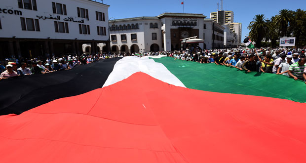 تظاهر عشرات الآلاف اليوم في العاصمة المغربية الرباط تضامنا مع الشعب الفلسطيني وتنديدا بالعدوان الإسرائيلي الهمجي على قطاع غزة.
