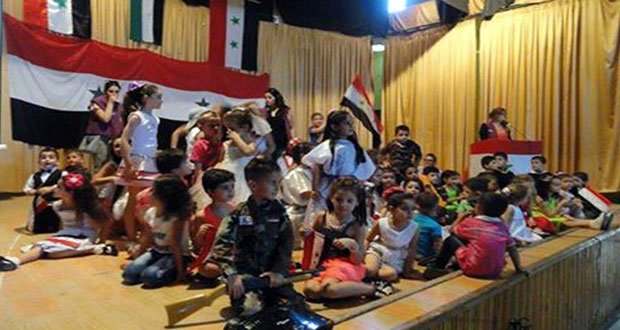 وقدم الأطفال المشاركون في النادي لوحات وعروضا مسرحية وفنية وغنائية تحت عنوان سورية القلب عبروا من خلالها عن حبهم وعشقهم لوطنهم ولحماة الديار الذين يضربون المثل الرائع في حب سورية والذود عنها ببسالة.