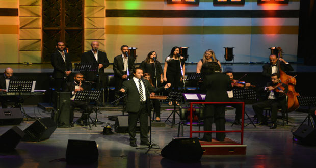 تألق المطربان وضاح اسماعيل واياد حنا في رابع أمسية من أمسيات مهرجان الموسيقا العربية مساء اليوم على خشبة مسرح الأوبرا في دار الأسد للثقافة والفنون بدمشق بمرافقة فرقة نظير مواس الموسيقية من خلال ما قدموه من أغان ومقطوعات موسيقية مميزة وجاء برنامج الحفل منوعا لكلا الفنانين ودون ترتيب ظهور بينهما فتناوبا على تقديم أغانيهما مع تقديم المايسترو مواس لعزف صولو مميز ومتقن ضمن مقطوعات موسيقية لثلاث أغان هي “أروح لمين” لكوكب الشرق أم كلثوم و”وحياتي عندك” للراحلة ذكرى و”يا خوفي من عتم الليل” للكبيرة فيروز والتي تفاعل الجمهور مع أدائها بالتصفيق والانسجام.