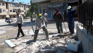 وقطعت ورشات بلدية الحسينية شوطا كبيرا في أعمالها لإعادة الحياة الطبيعية لإرجاء البلدة حيث أشار جمال السخنة رئيس لجنة الخدمات بضاحية الحسينية إلى أن أعمال الصيانة وإزالة الأتربة والنفايات الناجمة عن تعزيل وتنظيف الأهالي لمنازلهم مستمرة في حين بدأت الورشات بتأهيل أرصفة الشوارع الرئيسية في البلدة.