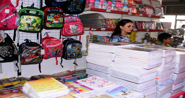 ولفت مشرف مراكز سندس في طرطوس عباس حسن إلى توافر تشكيلة واسعة من المستلزمات المدرسية بأسعار أقل من أسعار السوق بنسب تتراوح بين 20 و40 بالمئة وببصمة الصناعة الوطنية بالنسبة للأحذية والألبسة والقرطاسية.