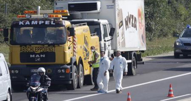 عثرت الشرطة النمساوية على جثث 50 مهاجرا في شاحنة متوقفة بالنمسا قرب الحدود مع المجر أمس.