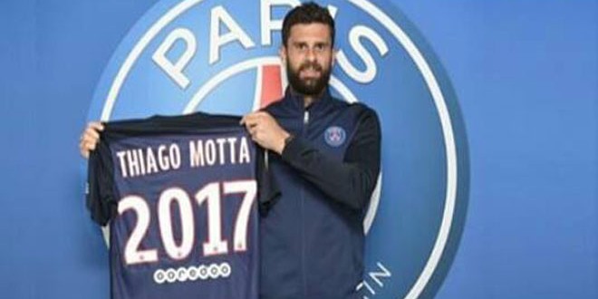 مدد باريس سان جيرمان عقد اللاعب تياغو موتا لموسم إضافي مع النادي حتى 30 حزيران 2017/.