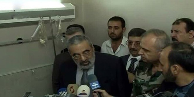 وأوضح الوزير الزعبي خلال زيارته والسفير الإيراني في دمشق محمد رضا شيباني الإعلامي الإيراني محمد حسن حسيني الذي أصيب أثناء تغطيته عمليات الجيش العربي السوري بريف اللاذقية أن الإعلام السوري يقدر عاليا تضحيات الإعلاميين الإيرانيين والموقف الإيراني الشعبي والرسمي مما يجري في سورية.