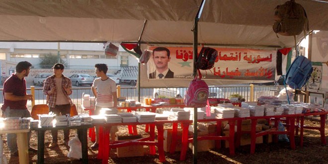 افتتح النادي العربي بالسويداء اليوم معرضا لتسوق المواد القرطاسية ضمن الحديقة المحيطة بمقره في مدينة المزرعة الرياضية بهدف توفيرها للطلاب بأسعار مخفضة عن السوق وذلك قبيل افتتاح العام الدراسي الجديد.
