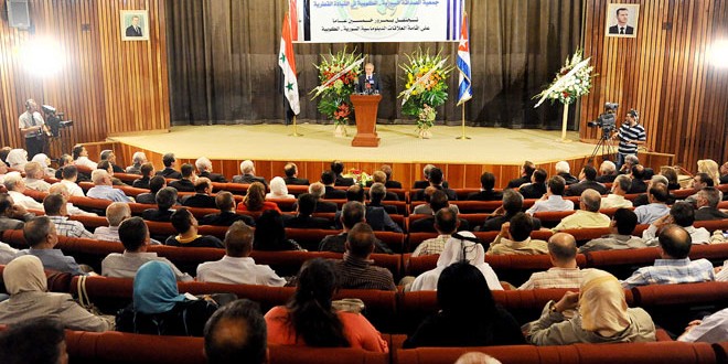 نظمت جمعية الصداقة السورية الكوبية في القيادة القطرية لحزب البعث العربي الاشتراكي اليوم احتفالا بمناسبة الذكرى الخمسين لإقامة العلاقات الدبلوماسية بين سورية وكوبا بحضور الأمين القطري المساعد للحزب المهندس هلال الهلال وذلك في مكتبة الأسد الوطنية بدمشق.