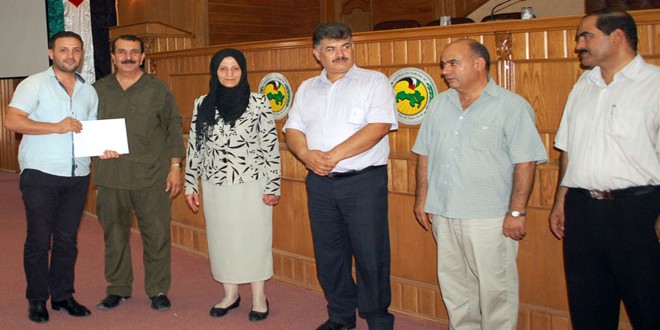 وشمل التكريم الذي أقيم في صالة فرع حزب البعث عددا من الإعلاميين المتميزين في جريدة الفداء والمركز الإذاعي والتلفزيوني وقناة سما والإخبارية السورية والوكالة العربية