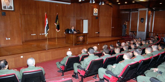 وخلال لقائه اليوم دورة ضباط القيادات الوسطى في مبنى وزارة الداخلية لفت الوزير الشعار إلى أن قوى الأمن الداخلي سطرت أروع ملاحم البطولة وأثبتت في الكثير من المواقف قوتها وصمودها وإيمانها بوطنها وكانت دائما جنبا إلى جنب مع أبطال قواتنا المسلحة في دحر العصابات الإرهابية المسلحة التي تعبث بأمن الوطن.
