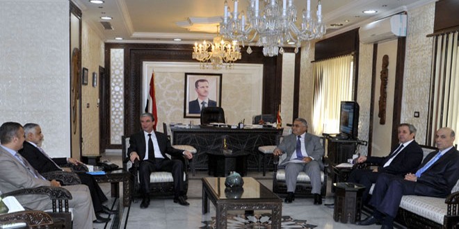 بحث وزير الثقافة عصام خليل مع الدكتور حمد بن سيف الهمامي المدير الإقليمي لمنظمة الأمم المتحدة للتربية والثقافة والعلوم اليونسكو اليوم المخاطر التي يتعرض لها التراث الأثري السوري جراء اعتداءات التنظيمات الإرهابية التكفيرية ودور المنظمات الدولية في حماية هذه الآثار وإيقاف عمليات تهريبها عبر بلدان مجاورة وإعادة ما سرق منها.