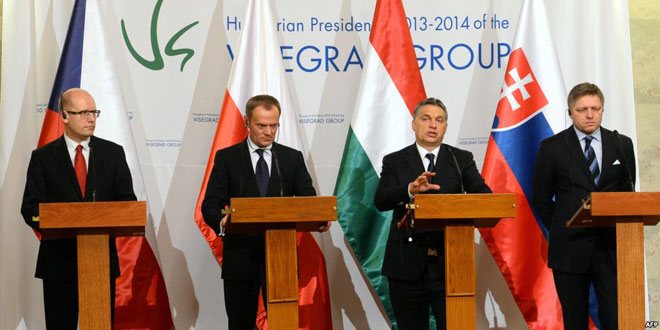 دعا رؤساء حكومات دول مجموعة “فيشيغراد” التي تضم تشيكيا وسلوفاكيا وهنغاريا وبولونيا الاتحاد الأوروبي إلى المساهمة بشكل اكثر نشاطا في حل الاوضاع القائمة في منطقة الشرق الأوسط مشددين على ضرورة تعزيز النشاطات الدبلوماسية والجهود التفاوضية مع مختلف الأطراف بما في ذلك الأمم المتحدة بالشكل الذي يؤدي الى حل سلمي ودائم في المنطقة ومن ثم استقرار الاوضاع وإعادة الإعمار.