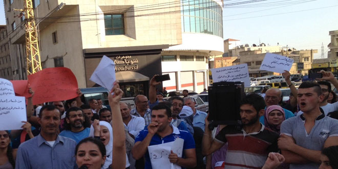 وقالت الوكالة الوطنية للإعلام ان المعتصمين في النبطية أطلقوا شعارات منددة بتقصير الحكومة في تلبية الشؤون الحياتية والمطلبية للمواطنين ورفعوا يافطات تدعو إلى إسقاط النظام واعتماد قانون انتخابي عادل وأقدموا على قطع الطريق العام لبعض الوقت.